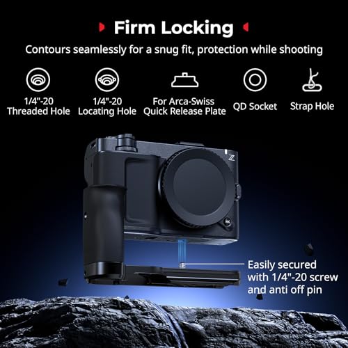 For Nikon ZR: SmallRig L-shape handle 5466 is specifically designed for Nikon ZR camera to offer enhanced grip. It attaches to the body via a 1/4"-20 threaded hole, creating a harmonious appearance and a secure fit without interfering with the use of the charging dock or camera buttons, effectively preventing bumps from the bottom and allowing for safer shooting.