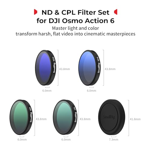 - Designed for DJI Osmo Action 6: SmallRig ND filter kit includes CPL, ND8, ND16, ND32 filter, and lens cover. The filter utilizes full-spectrum technology that evenly reduces light across all wavelengths, minimizing color casts and ensuring true-to-life color reproduction in your footage.