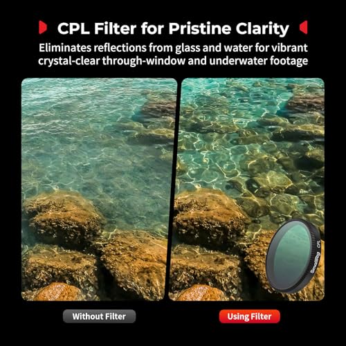 - Versatile 4-Filter Kit for Any Scene: Includes essential ND8 (bright daylight situations to achieve balanced exposure), ND16 (moderate light), ND32 (strong light/creative long exposure), and a CPL filter (eliminates reflections, enhances underwater/window clarity) for ultimate creative control.