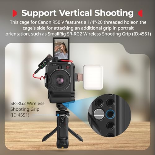 SMALLRIG R50 V Camera Cage for Canon R50V, Full Cage with Silicone Grip, Top Handle for ARRI, Cable Clamp for HDMI, Built-in Cold Shoe, QR Plate for Arca, QD Sockets, Vertical Shooting (Black) -5766