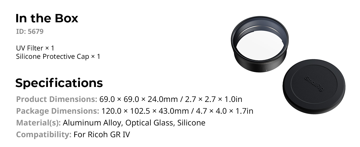 - For Ricoh GR IV: SmallRig UV Filter for RICOH GR IV 5679 is the ultimate protection solution for the retractable lens of the Ricoh GR IV, designed to safeguard your valuable lens while allowing creativity in any environment