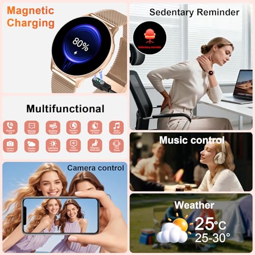 - The Ideal Gift for Any Occasion:This ladies watch is the perfect gift for birthdays, holidays, or just to treat yourself. With its elegant design and powerful features, it combines fashion and functionality, making it a thoughtful and practical present. The package includes the smart watch for women, a magnetic charging cable, and a user manual—ready to use straight out of the box. It’s a gift that any woman will appreciate.