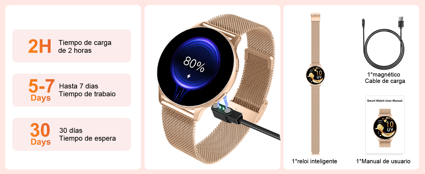 - Long Battery Life & Fast Charging:Never worry about running out of battery with this smart watch. A full charge takes just 2 hours and provides up to 7 days of usage, with a standby time of more than 30 days. It’s ideal for busy women who want a low-maintenance device that stays powered through all their daily activities. Whether you're tracking workouts, receiving calls, or monitoring your health, this fitness watch won’t slow you down.
