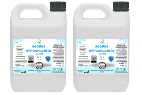 Sodium Hypochlorite 10 Litres Patio Cleaner (2x5L) | Extra Strong 14-15% Concentration | Swimming Pool Liquid Chlorine & Black Spot Remover | Bleach Solutio
