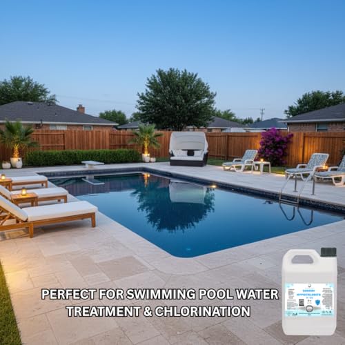 - SWIMMING POOL TREATMENT: Ideal liquid chlorine additive for swimming pools, helps maintain proper sanitation levels and eliminates algae and bacteria for crystal-clear water