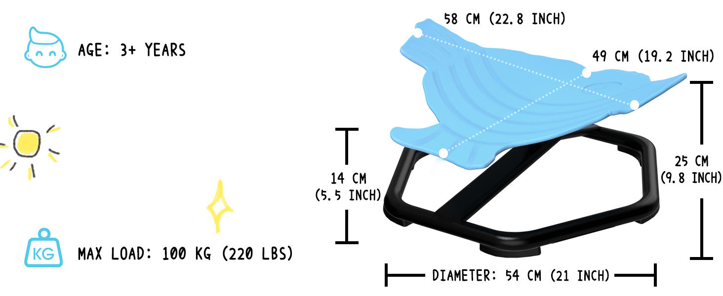 Perfect for children aged 3 and up, our spinning chair accommodates growth with a 100kg weight capacity, serving as a durable tool for both play and developmental therapy for years to come.
