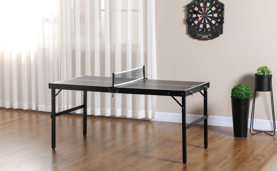 - Mini table tennis: Enjoy game nights with our kid-friendly mini tennis table. It is slim to fit easily in small apartments, small basements and other limited spaces, eliminating the bulk of standard tables that don't leave enough room elsewhere.