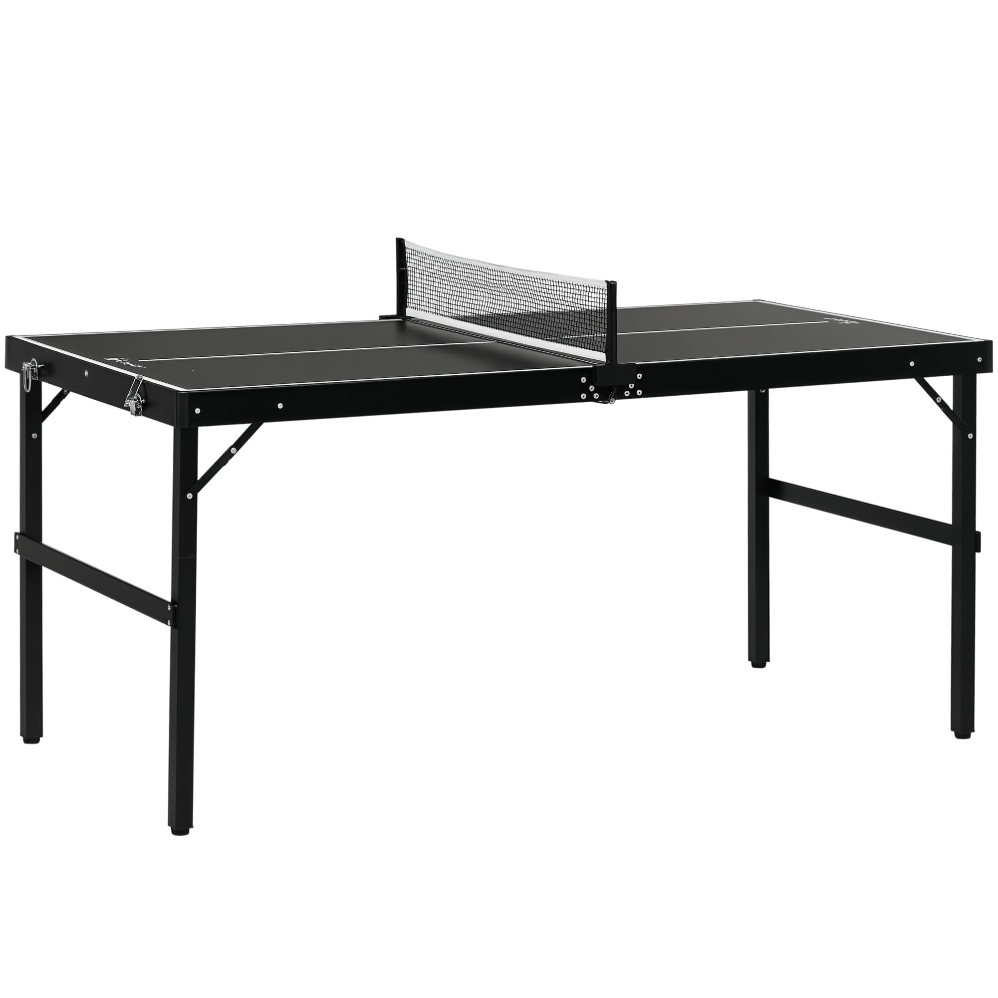 SPORTNOW 5ft Mini Table Tennis Table, Folding Ping Pong Table with Net and Aluminium Frame, Portable Ping Pong Game Set for Indoor Outdoor Use, Black