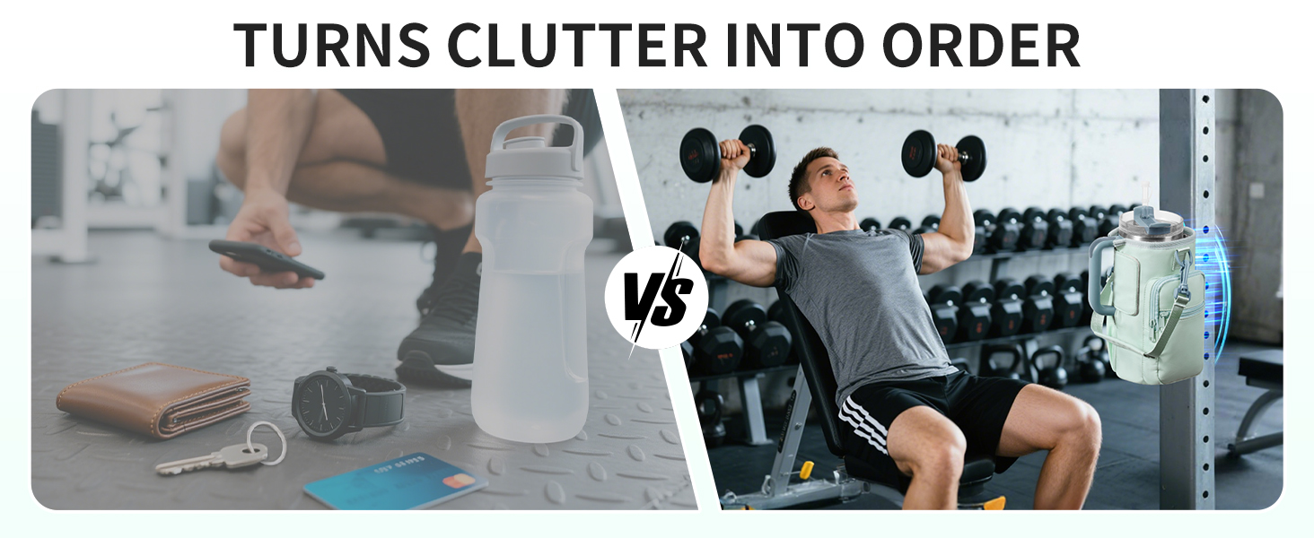 - 【Strong Magnetic Attachment】Powerful Magnet Design: Features 4 built-in magnets with a maximum weight capacity of 3kg, securely attaching to most metal gym equipment. Keeps your water bottle and essentials within easy reach, preventing them from ground