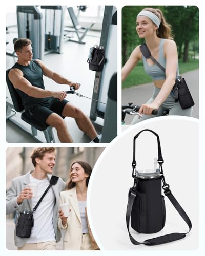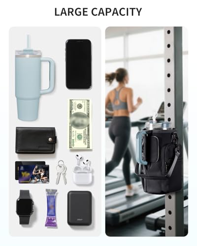 Sportsnew Magnetic Gym Bag Water Bottle Holder for 40oz Tumbler, with Phone Pocket & Strap, 4 Built-in Magnets Compact Design for Workout & Fitness Training