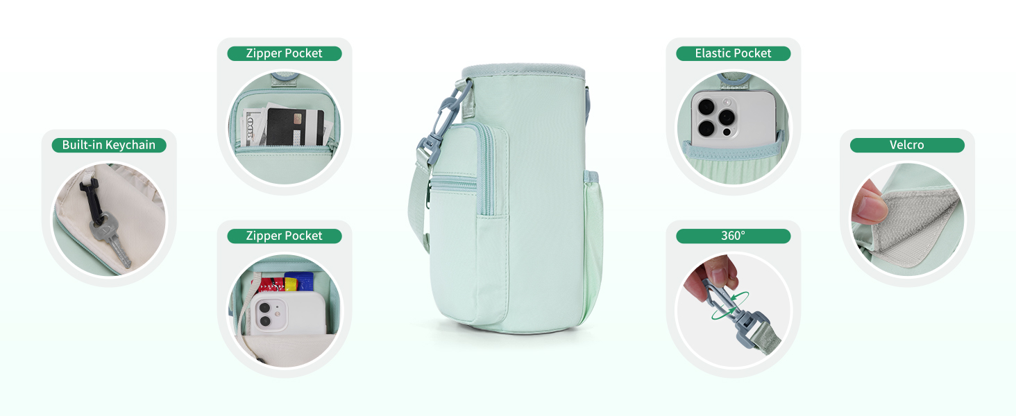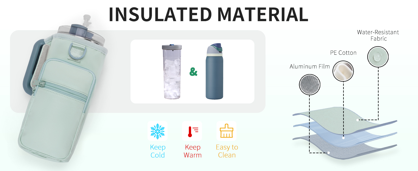 - 【Durable & Insulated Materials】Built to Last: Crafted from tough, waterproof materials that resist sweat, scuffs and daily wear. The insulated lining helps keep drinks hot or cold for longer, while the detachable handle and adjustable shoulder strap offer comfortable hand-carry or crossbody carry.