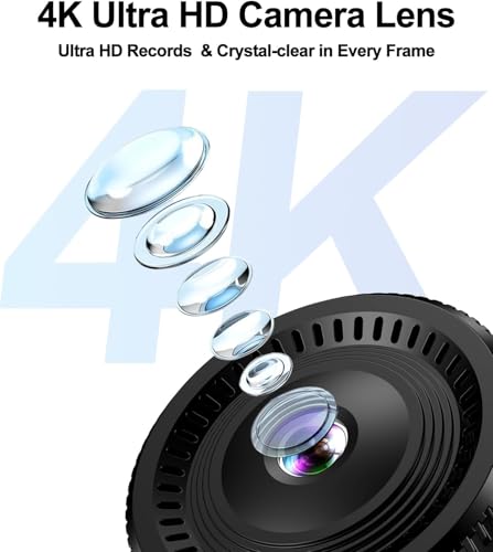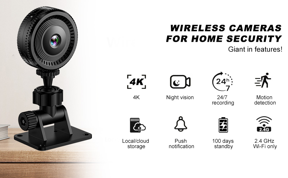 4K Mini Security Camera & Auto Night Vision: Mini Camera capture every minute detail in stunning 4K resolution with a super-wide 170° viewing angle, ensuring complete coverage of any room. Security camera have 8 pcs IR light, Advanced infrared night vision automatically activates in low light, providing sharp black-and-white footage even in total darkness. Guarantee peace of mind with 24/7 all-weather security.