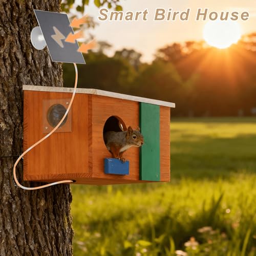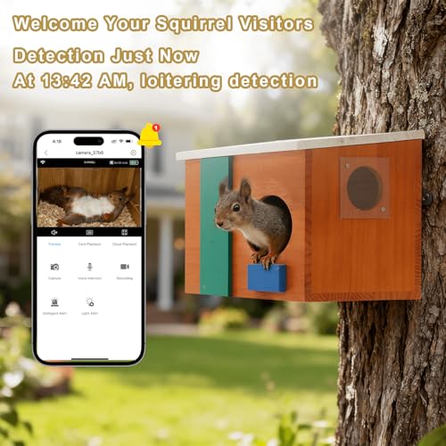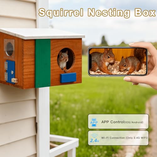 HD Smart Squirrel House Camera: Our squirrel house is equipped with a 1080p HD camera and solar panel, allowing you to watch squirrels nesting, resting, or playing in clear detail. Supports 2.4GHz Wi-Fi for real-time viewing on your phone.