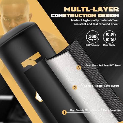 Boxing Punching Bag: The stand up punching bag made with 0.7mm PVC material and textile polyester net fabric, multi-layer construction for ensure tear-resistant, fast rebound, can also balance good hardness and protective your hands.