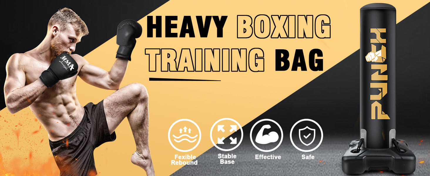 Ideal For Boxing Training: Free standing punching bags are versatile fitness equipment, portable and practical. With a heavy punching bag, you can train the chest, abdomen, arms and other parts of the body. It is also helpful in training your body's response sensitivity and stress relief
