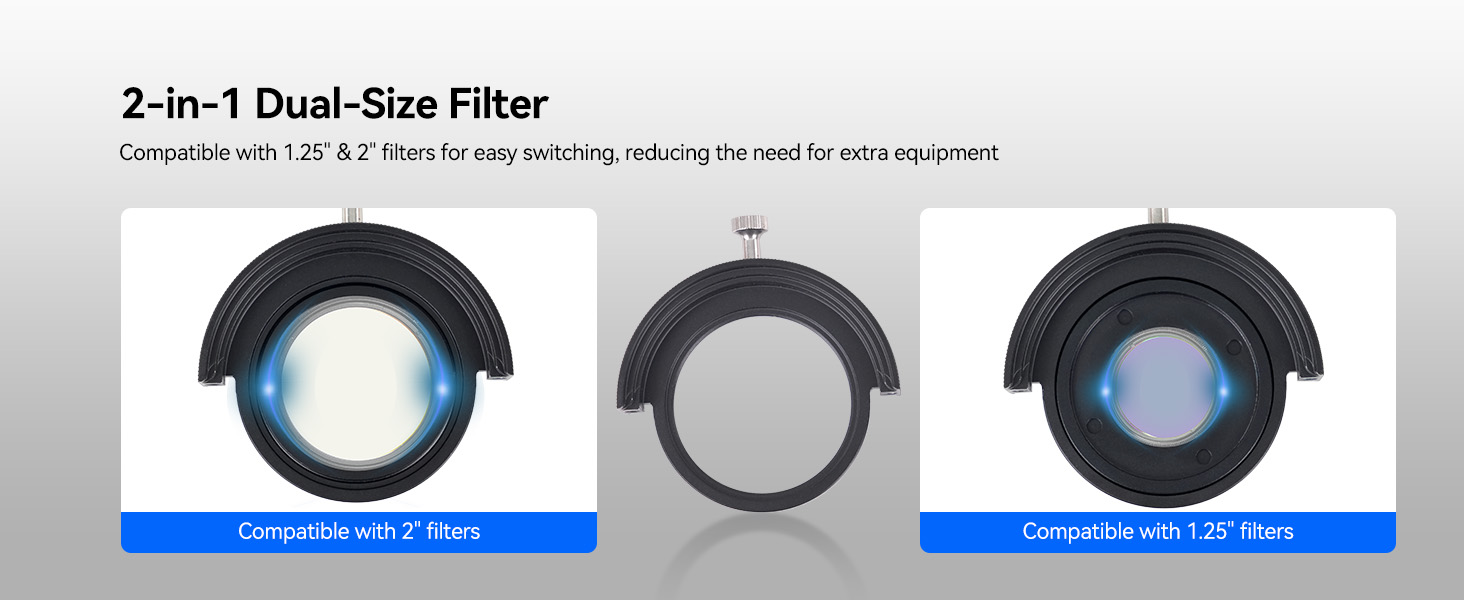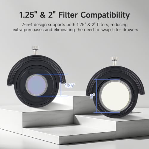 - Dual-size compatibility: this Svbony SV226P filter holder features a 2-in-1 design that fits both 1.25" and 2" filters; reducing extra purchases and simplifying your telescope accessory setup