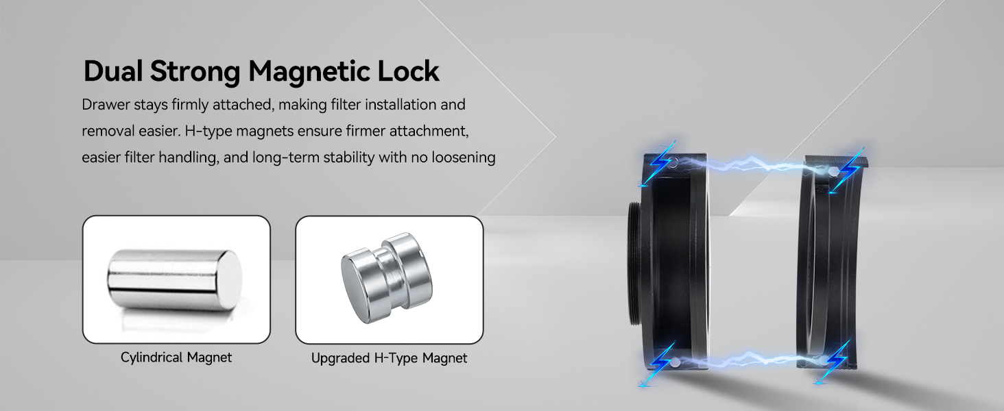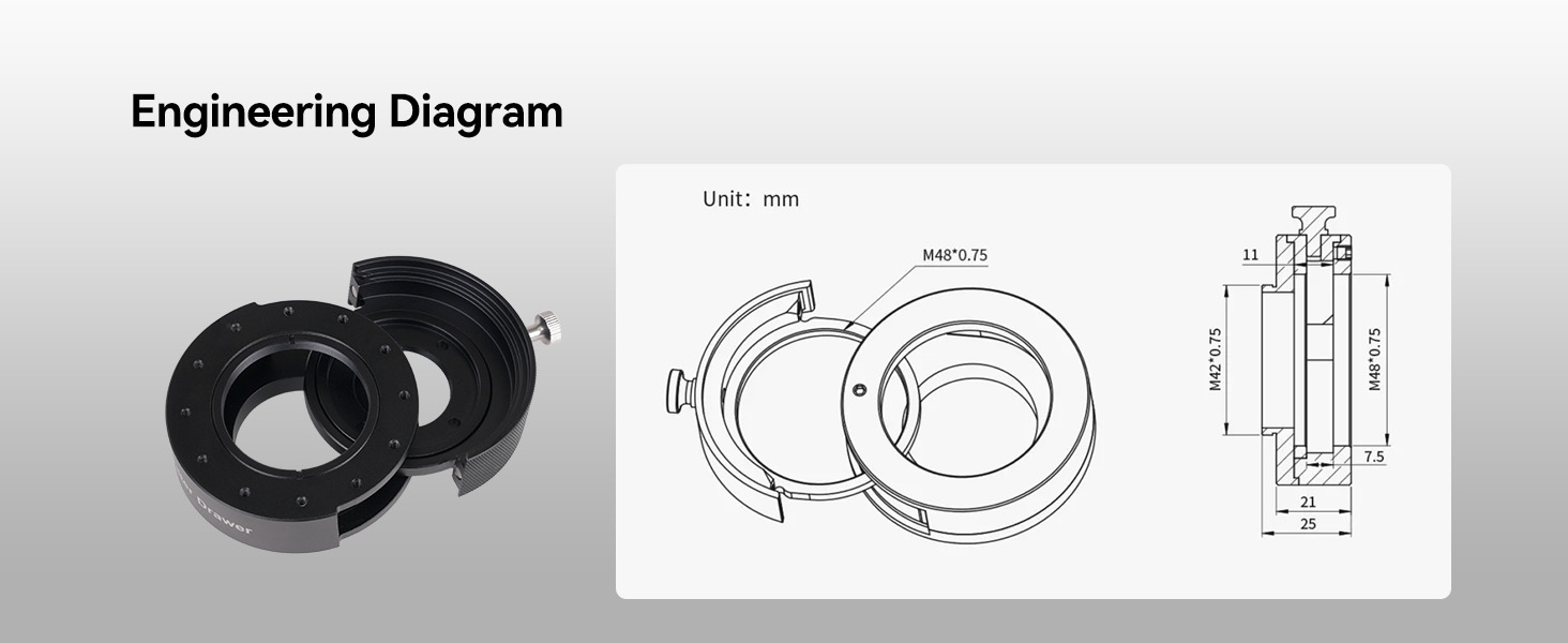 - Stronger magnetic locking: this telescope filter drawer uses an upgraded H-type magnetic structure combined with a side locking screw to keep filters firmly in place; offering tighter fit; stronger hold; and long-term stability