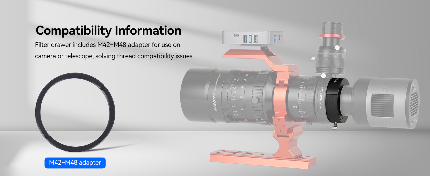 - Versatile telescope compatibility: equipped with M48×0.75 and M28.5×0.6 filter threads; plus M48×0.75 telescope-side threads; this telescope accessories offers flexible; secure connections for a wide range of astrophotography setups