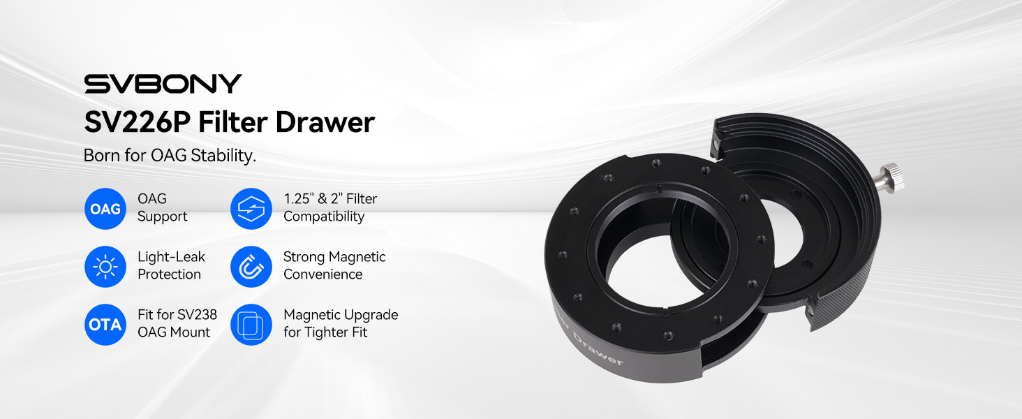 - Strong OAG support: Svbony SV226P filter drawer uses 12 evenly spaced M2.5 threads for a tight; stable OAG connection; keeping your telescope filter drawer setup solid and aligned