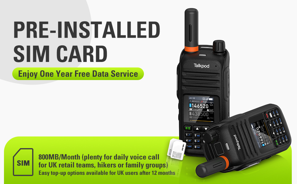 Free Authorization and Data Plan: Includes a SIM card with 1 year of service (up to 300MB/Month*12Month, suitable for regular voice-only communication). Each device comes with free authorization to use the VHAM App for at least 5 years