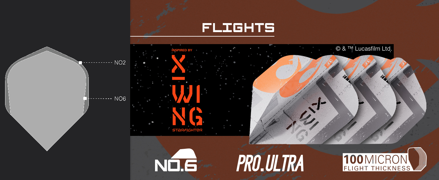 No.6 Pro Ultra flights feature X-Wing and Rebel Alliance artwork for instant recognition