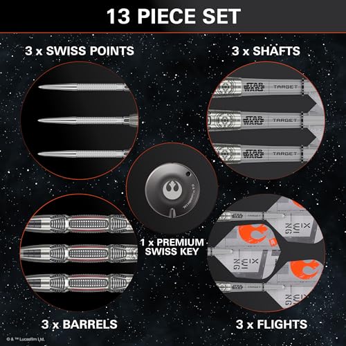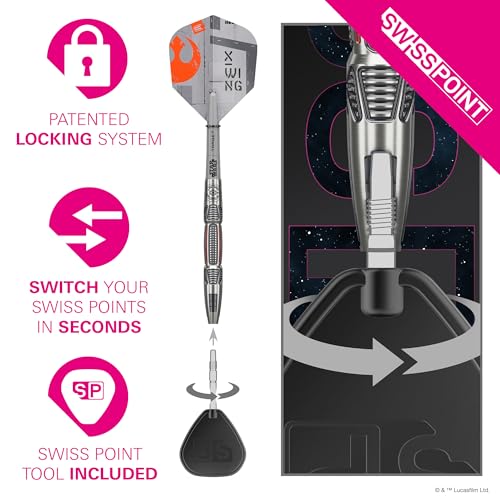 Target Darts Star Wars X-Wing 90% Tungsten Steel Tip Darts, 22G/24G/26G | Silver GRD Swiss Points, Pro Grip Shafts, X Wing No.6 Pro Ultra Flights & Swiss Point Tool