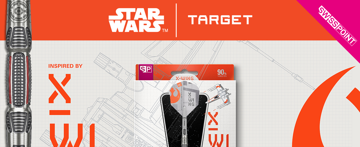 STAR WARS | TARGET X-WING STEEL TIP DARTS: Take flight with the Rebel Alliance using the X-Wing 90% tungsten darts, blending iconic Star Wars design with Target’s world-class dart engineering. An official collaboration with the Walt Disney Company.