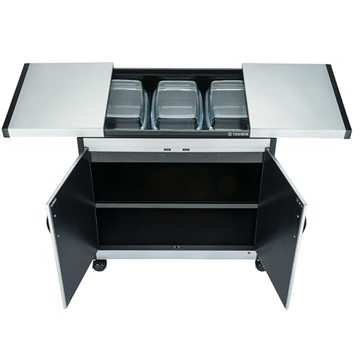 Teknix TK2HOSTIX Electric Hostess Trolley – Heated Food Warming Trolley with Sliding Lid & Glass Dishes