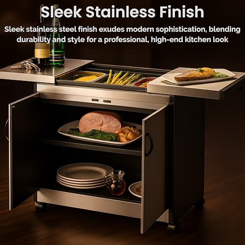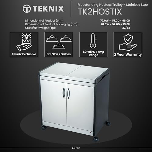 The TEKNIX Electric Stainless Steel Food Warming Trolley is a stylish and practical solution for keeping meals warm and organised when entertaining. Designed exclusively under the TEKNIX brand, this premium hostess trolley combines generous heated storage with a sleek stainless steel finish, making it perfect for dinner parties, family gatherings, and festive occasions.