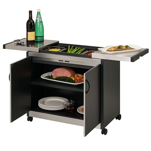 TEKNIX Electric Stainless Steel Hostess Trolley – Heated Food Warming Trolley with Sliding Lid & Glass Dishes