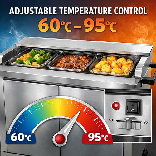 - Adjustable Temperature Control (60–95°C) – Maintains food at the ideal serving temperature with a single rocker switch and red indicator light for clear operational status.