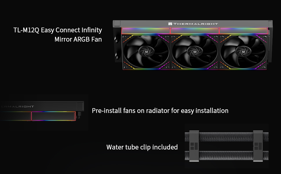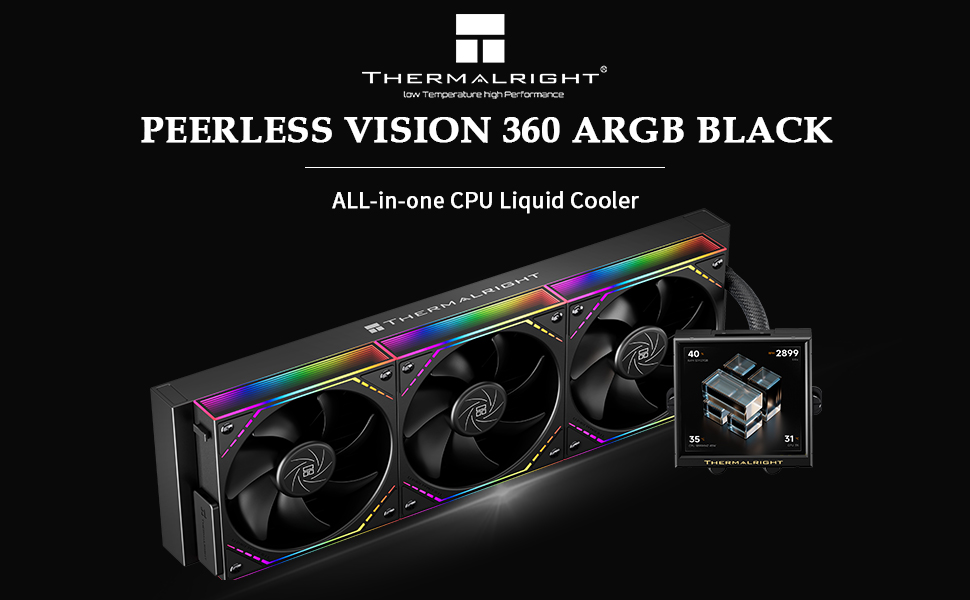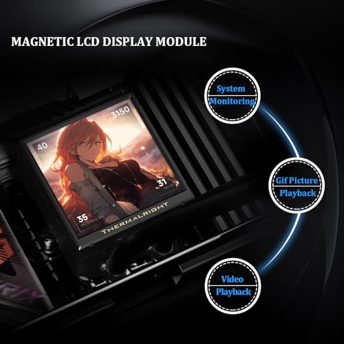 [Detail Optimization] 3 pre-installed fans of the radiator, no wires required, free splicing, 480×480 resolution LCD display, a variety of background theme display. The CPU fans transmit signals and power through contacts to keep the CPU cooler clean.