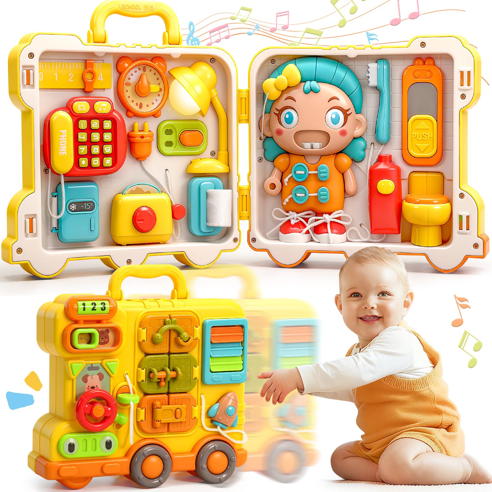 - Diverse, Fun Learning Activities: This Montessori toy board combines musical instrument sounds, nursery rhyme melodies, and soft lights. Through play, it helps toddlers develop fine motor skills, hand-eye coordination, color and shape recognition, and cognitive abilities.
