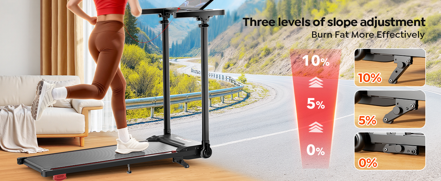 - 【Upgraded 10% Incline Treadmill】: Unlike ordinary walking pad treadmill, the TOPUTURE under desk treadmill has an updated 1%-5%-10% incline function, allowing you to enjoy the experience of hiking and mountain climbing at home, which can increase fitness and fat burning efficiency by 70%