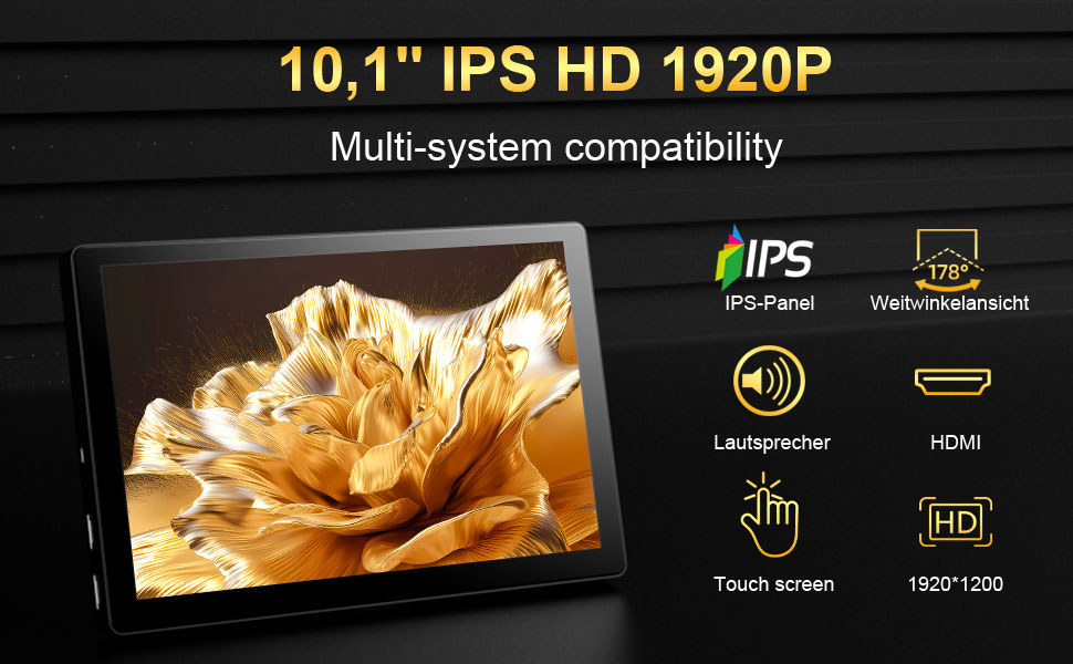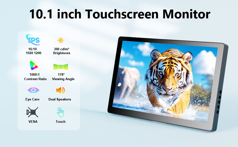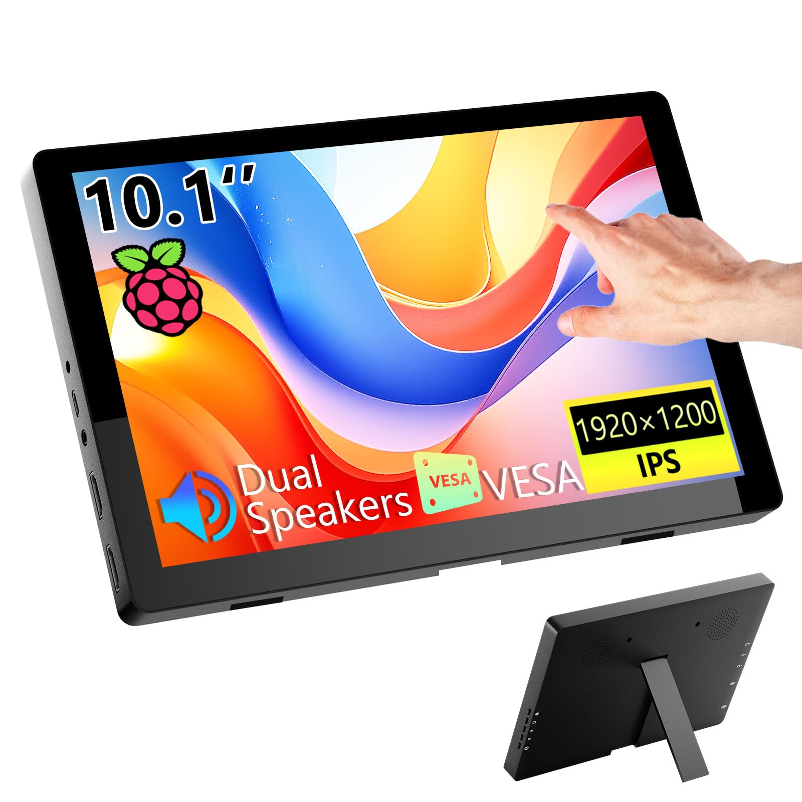 Touchscreen Portable Monitor10.1 Inch, HD 1920×1200 resolution Compatible with Raspberry Pi, Mini HDMI Displays, PCs, Laptops, and Gaming Consoles