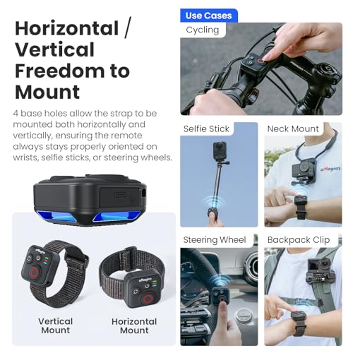 Multiple mounting options: comes with two straps, one for the wrist and one for attaching the controller to a selfie stick, bikes, backpacks, etc. The unit has slots on top, bottom and both sides, allowing for vertical or horizontal strap installation, depending on your specific needs