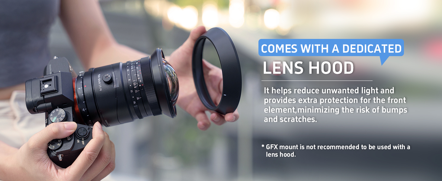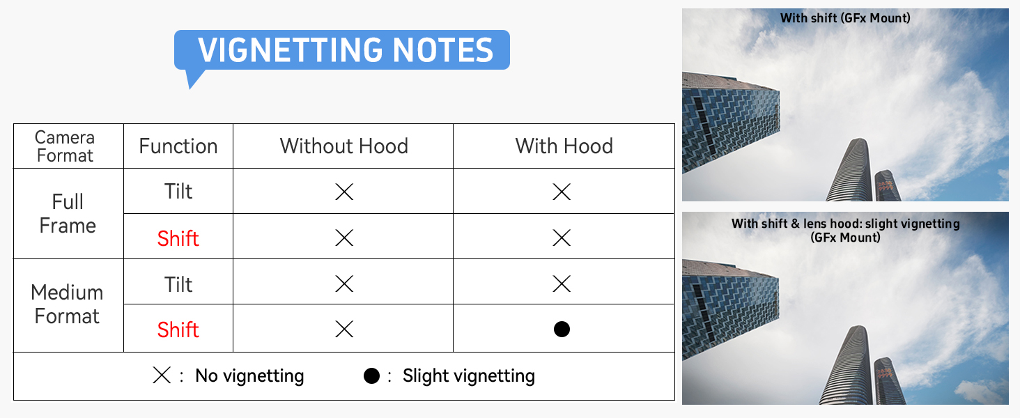 - *Note: for GFX Mount, when using the Shift function with the lens hood attached, slight vignetting will occur.