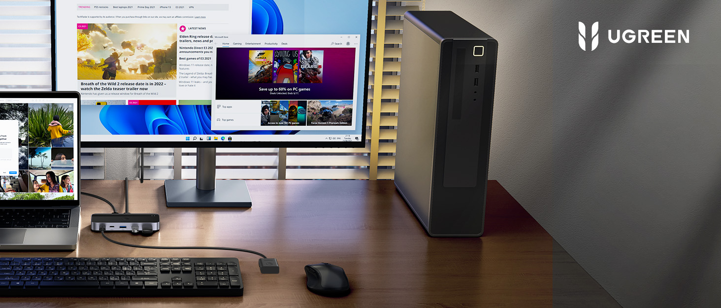 Two Ways to Switch: The UGREEN kvm switch with the one-button switch or desktop controller, you can quickly switch the host devices as you like. (Note: Hotkey switching is not supported).