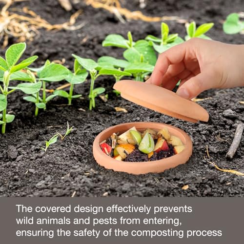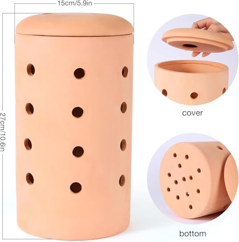 Underground Worm Farm Clay Garden Composting Container Ceramic Outdoor Gardening from Kitchen Food Waste with Holes Systems Sustainable Wormery Composter for Raised Beds at Home (27.9 cm, 1)