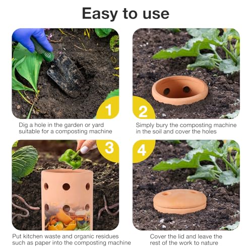 Perfect design: the worm composting machine adopts a cylindrical red ceramic design, which not only has a rich texture, but also has good durability. The design with a lock cover effectively prevents the penetration of wild animals and unwanted pests, ensuring the safety of the composting process.