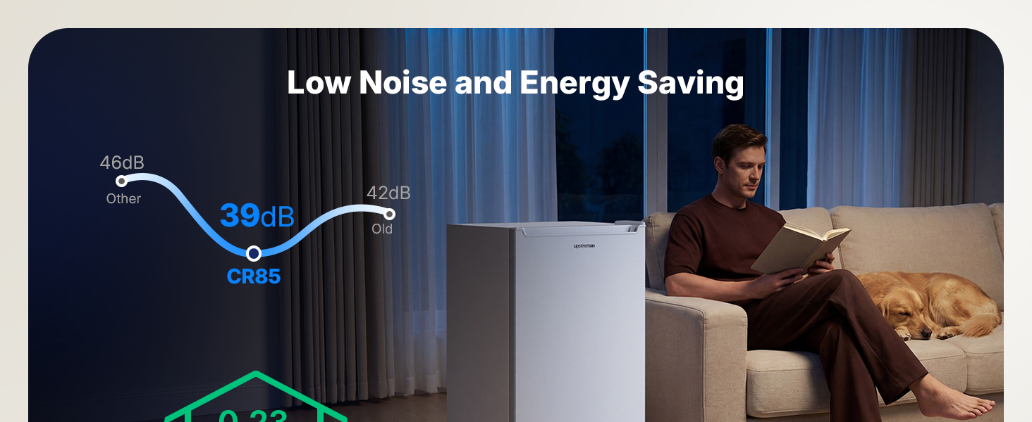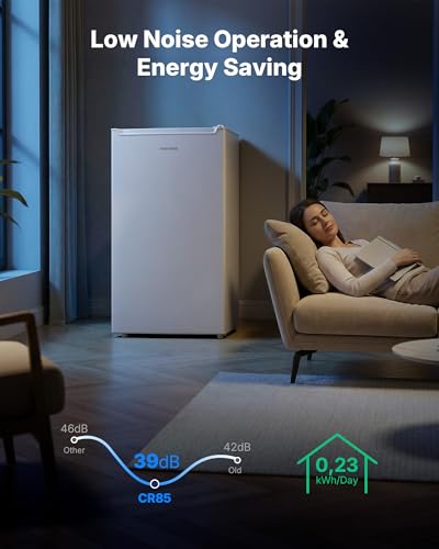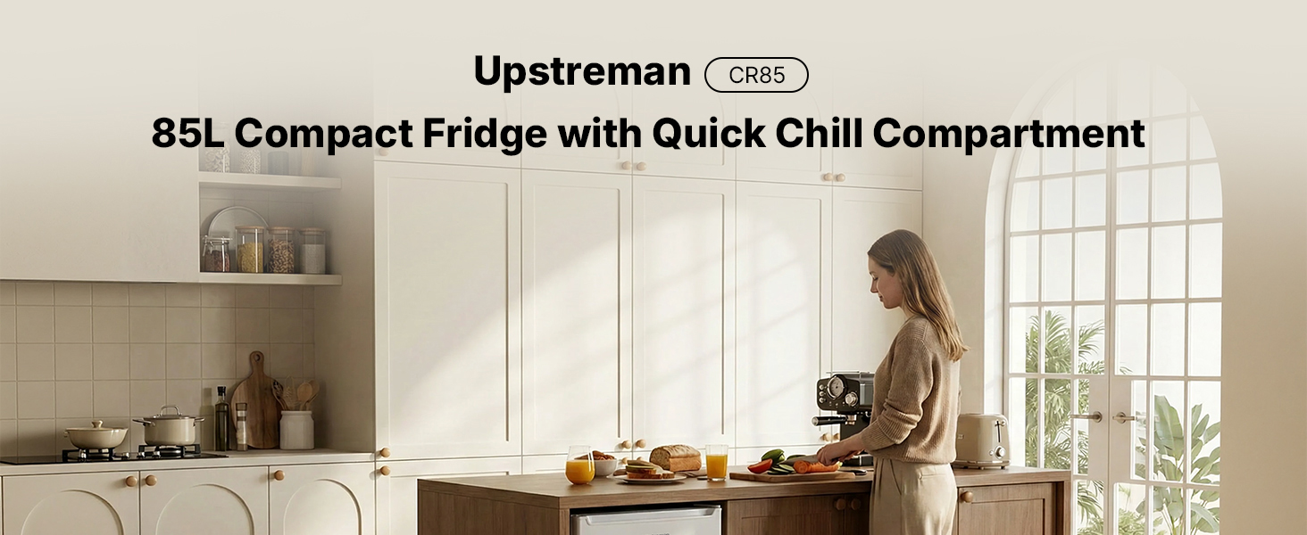 Upstreaman Under Counter Fridge 85 Liter, Small Fridg with Interior LED Light,Large Door Shelf,Temperature Control,Energy Saving & Low Noise,Undercounter Refrigerator,White,CR85 [Energy Class E]