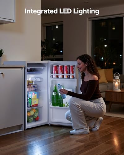 Compact & Small fridge: Measuring just 83×45×42.5cm with a footprint of only 0.19㎡, this mini fridge is designed to fit seamlessly into any space—whether it’s your home kitchen, office break area, or even a camper van. Equipped with an internal LED light that illuminates every corner, it combines portability with practicality, making it ideal for small living spaces or on-the-go lifestyles.