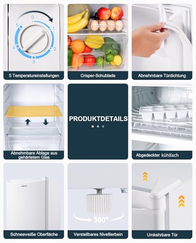 Upstreaman Under Counter Fridge, 91L Small Fridge Quiet for Bedroom and Dorms, Five Stage Temperature Control and Removable Shelves, Standard Refrigerator BR321 (White) [Energy Class E]