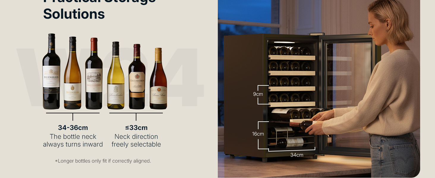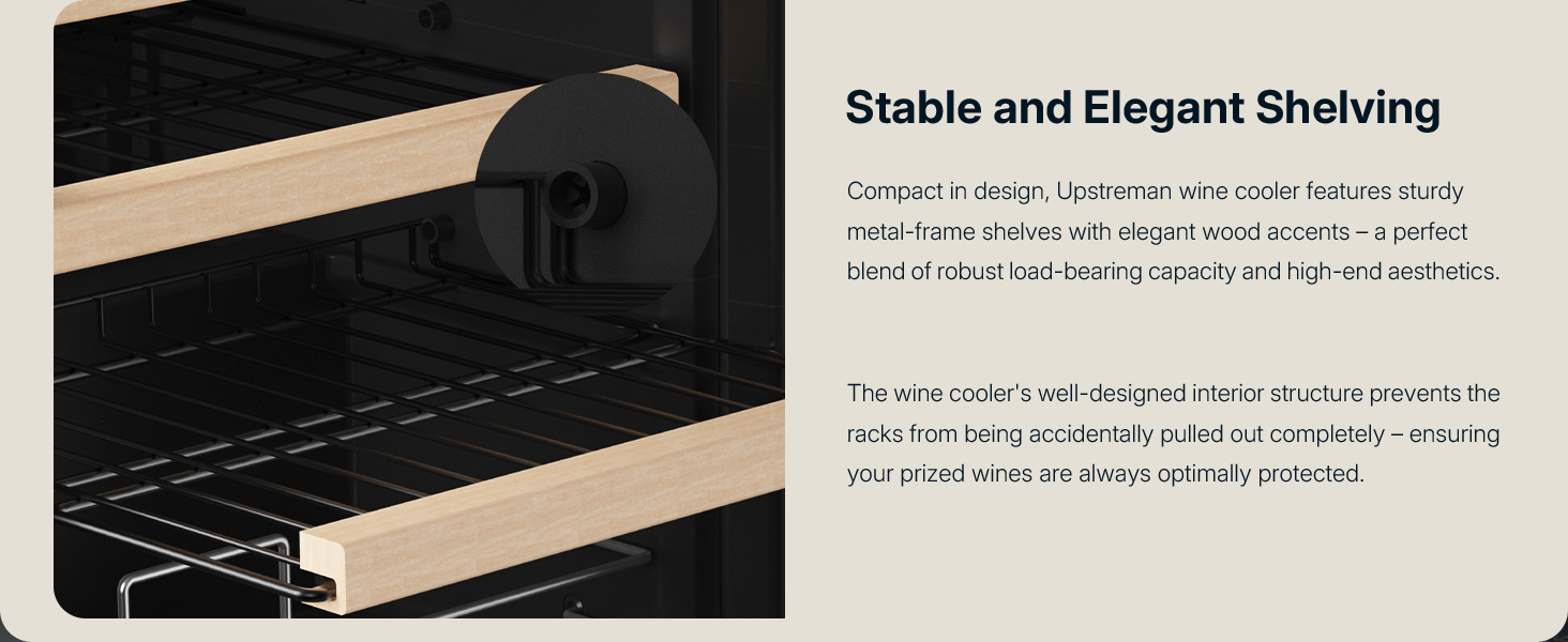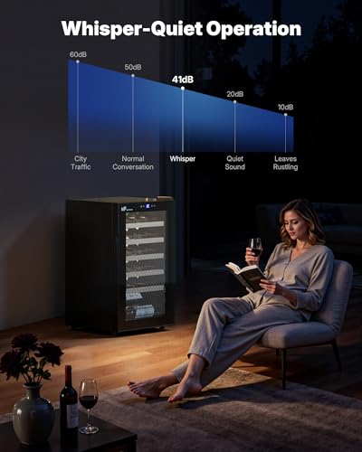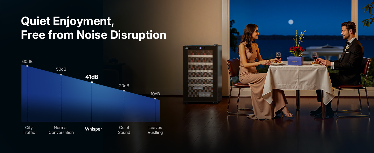 Quiet & Stable Operation: Enjoy undisturbed moments: this unit operates at a whisper-quiet 41 dB. Combined with adjustable levelling feet for stable placement on any surface, it’s the discreet, reliable guardian of your wine collection