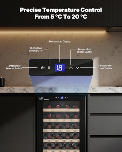 Precision Temperature Control: The heat-insulating double-glazed door minimises cold loss and helps maintain optimal wine storage temperatures. Use the integrated digital touch control panel to precisely set and maintain temperatures between 5°C and 20°C (the display shows real-time temperature readings)
