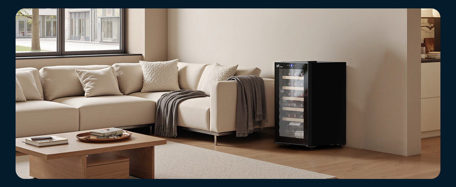 Compact Design, Impressive Storage Capacity: This wine cooler (45x43x75 cm) holds up to 24 bottles, delivering the perfect storage solution for wine enthusiasts. Its compact footprint makes it ideal for kitchens, living rooms, or home offices