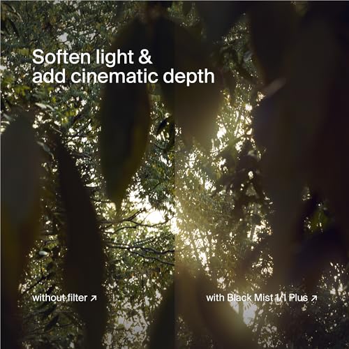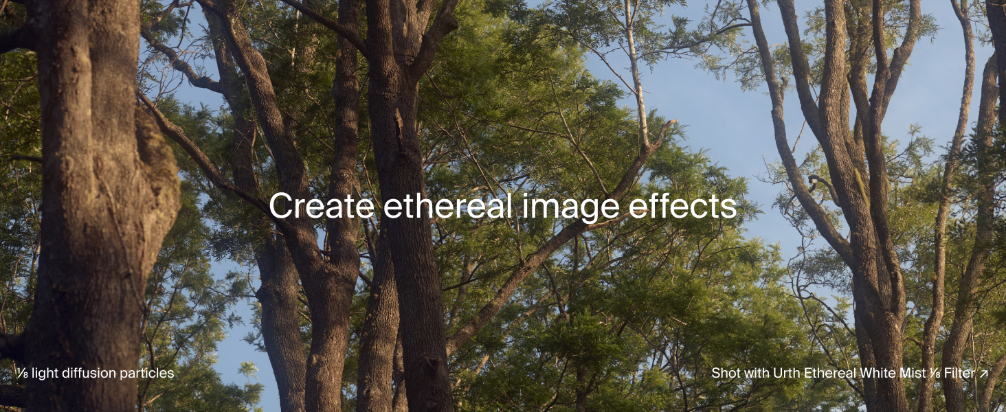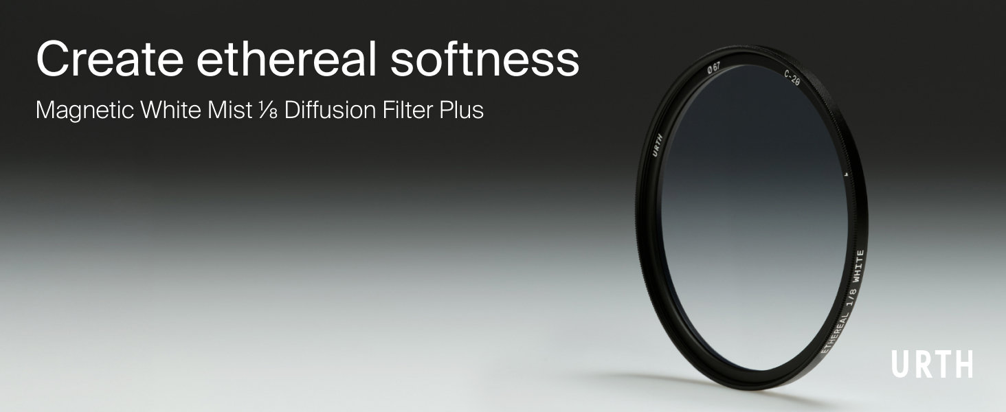 VISIBLE DIFFUSION | Urth Magnetic Ethereal ¹⁄₁ Diffusion Lens Filter Plus diffuses the most light to create a strong haze effect and lower contrast. Works best with bright and close light sources.