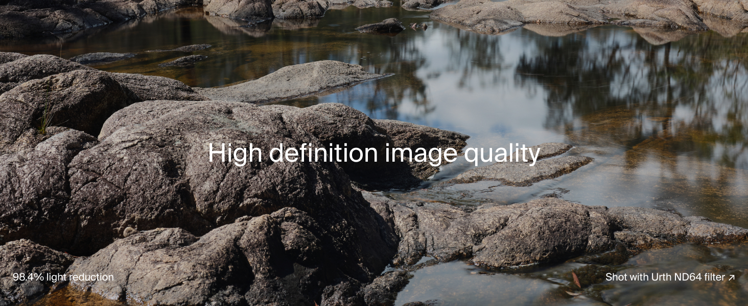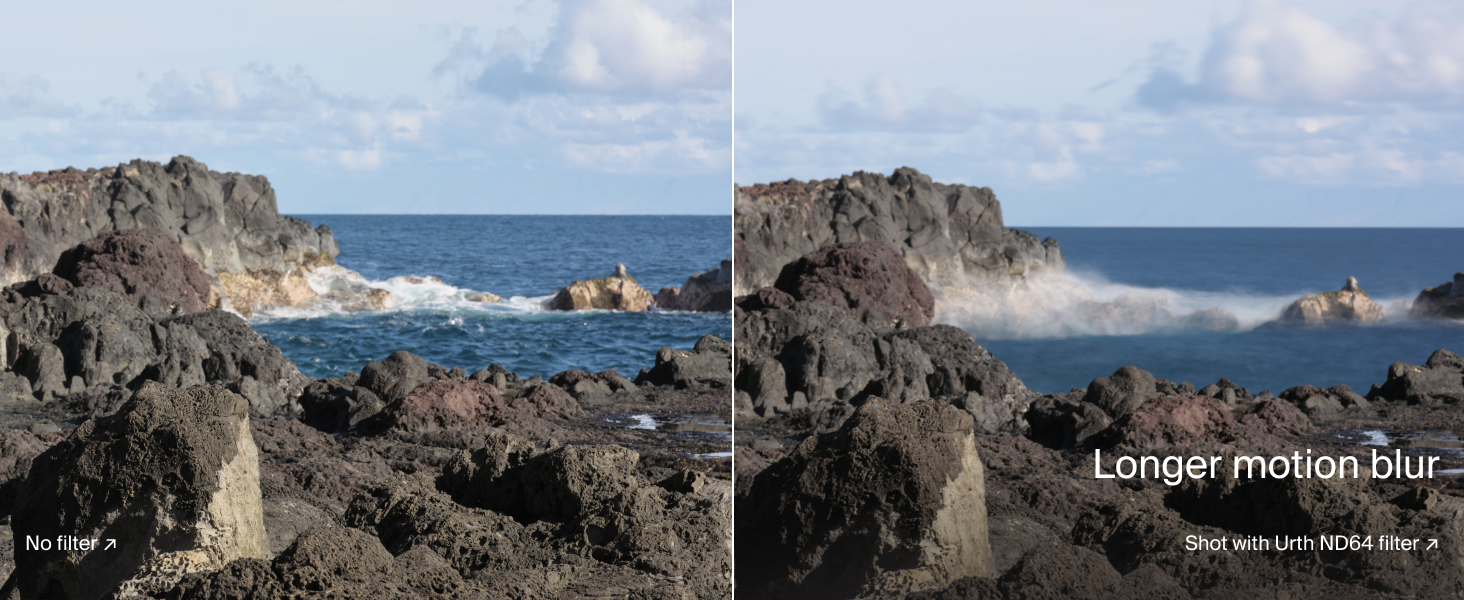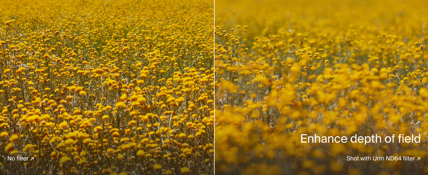CUT 6 F-STOPS | Urth Magnetic ND64 Lens Filter Plus lets you capture motion blur and depth of field effects. Great for landscape photography and cinematic effects in videography.