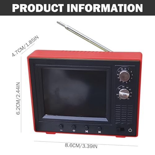 Description: Dollhouse TV 1:12 Scale USB Rechargeable Vintage Mini TV Toy That Can Play Video with LCD Screen & 180° Rotatable Antenna Dollhouse Furniture for DIY Setting Accessories combines the charm of retro TV miniatures with modern technology, featuring a realistic design at the perfect scale to complement your dollhouse furniture and miniatures collection, while its USB rechargeable feature and built-in LCD screen enable actual video playback to enhance interactive play and display; its compact size and versatile use as a dollhouse accessory make it a standout addition for hobbyists and collectors seeking the world’s smallest functional vintage TV to elevate their DIY dollhouse settings. Features:. Dollhouse TV. -Color: Red. -Material: ABS, LCD Screen. -Size: about 8.6×6.2×4.7 cm/3.39×2.44×1.85 inch. -Charging methods: Standard USB charging. -Charging time: 30 minutes. -Storage space: 8G. -Working duration: Can play for 150 minutes. -Video format: Supports full format machines such as MP4 (resolution compression required). -Buttons: Previous track/Next track/Volume up/Volume down/Power on/Off. The charging port is at the back. -Other functions: Long press the previous or next track to fast forward or rewind.