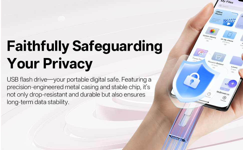 High-Speed Stable Transfer—This USB C Flash Drive for iPhone delivers stable, high-speed read/write performance (100MB/s), transferring a 1GB movie in mere seconds. Whether handling batch photos, large work files, or video footage, transfers complete in the blink of an eye, effortlessly meeting your daily needs.